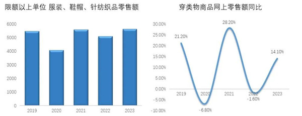2023年消費(fèi)市場(chǎng)零售及服裝零售同比變化及毛紡產(chǎn)品進(jìn)口變化情況