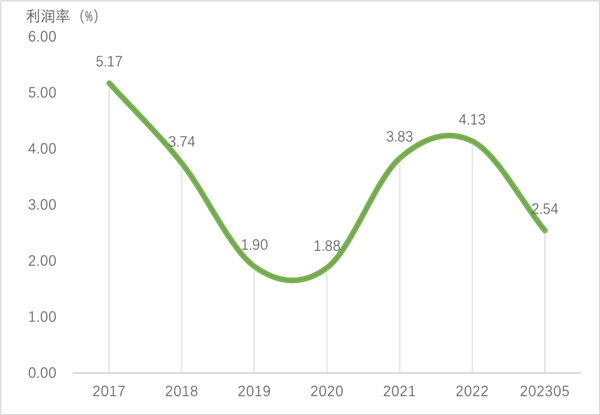 2018-2023年·規(guī)模以上毛紡織及染整企業(yè)平均利潤(rùn)率變化情況