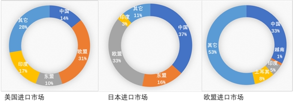 2023年美國(guó)、日本及歐盟進(jìn)口份額情況