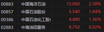 石油股全線拉升,中國海洋石油漲約2.38%,中國石油(5.54, 0.10, 1.84%)漲1.84%,中國石化漲1.36%。消息面上,美國WTI原油期貨周二收高逾2.5%,創(chuàng)10周以來新高。另外,中央深改委指出,進(jìn)一步深化石油天然氣市場體系改革,加強(qiáng)產(chǎn)供儲銷體系建設(shè)。