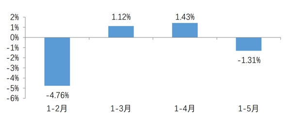 圖1. 2022~2023年1-5月我國規(guī)模以上家用紡織品企業(yè)營業(yè)收入及利潤增長趨勢