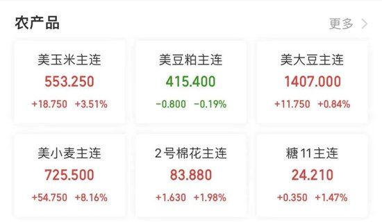 截至今晨收盤,CBOT小麥期貨漲超8%,盤中多個(gè)合約觸及漲停,創(chuàng)2012年以來(lái)十年最大漲幅,彭博谷物分類指數(shù)漲3.5%,玉米期貨也漲超3%。