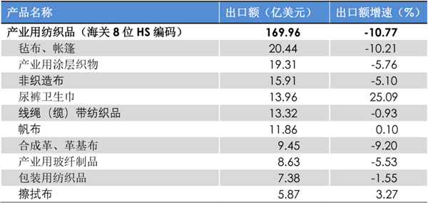 2023年1-5月產(chǎn)業(yè)用紡織品行業(yè)及主要產(chǎn)品出口情況