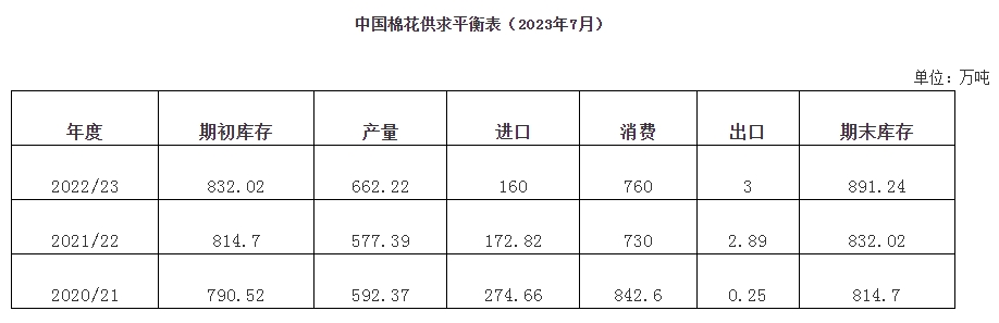 7月18日,有關(guān)部門發(fā)布公告,根據(jù)國家相關(guān)部門要求,為更好滿足棉紡企業(yè)用棉需求,近期組織銷售部分中央儲備棉。時(shí)間:2023年7月下旬開始,每個(gè)國家法定工作日掛牌銷售;每日掛牌銷售數(shù)量根據(jù)市場形勢等安排;掛牌銷售底價(jià)隨行就市動態(tài)確定,原則上與國內(nèi)外棉花現(xiàn)貨價(jià)格掛鉤聯(lián)動,由國內(nèi)市場棉花現(xiàn)貨價(jià)格指數(shù)和國際市場棉花現(xiàn)貨價(jià)格指數(shù)各按50%的權(quán)重計(jì)算確定,每周調(diào)整一次。