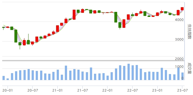 今日(2023年07月31日,周一)中國繭絲綢交易市場生絲指數(shù)上漲0.24%收于4747.13點,本月生絲指數(shù)上漲3.12%。B絲(商檢4A級生絲):230825合約上漲0.15萬元報收于47.22萬元;230925合約上漲0.18萬元報收于47.61萬元;240325合約上漲0.21萬元報收于48.69萬元。4A級生絲指數(shù)日線