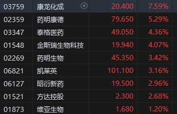 醫(yī)藥外包概念股強勢上漲,康龍化成漲近8%。消息面上,紀檢監(jiān)察機關配合開展全國醫(yī)藥領域腐敗問題集中整治工作動員部署視頻會議今日在北京召開,醫(yī)藥反腐正在進行時,但交銀國際(0.395, 0.00, 0.00%)指出,短期內(nèi)本輪反腐將打擊、清退部分運營不合規(guī)的企業(yè),但對合規(guī)較嚴格的龍頭藥企和械企來說影響有限;長期來看,這將進一步扭轉(zhuǎn)醫(yī)藥行業(yè)重銷售、輕學術的現(xiàn)狀,促使真正具有創(chuàng)新性的產(chǎn)品脫穎而出,利好創(chuàng)新藥和創(chuàng)新器械行業(yè)的健康發(fā)展。