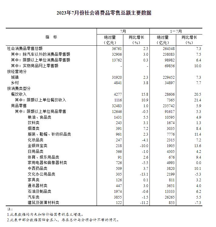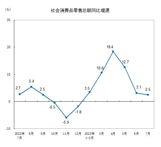 2023年7月份社會消費品零售總額增長2.5%