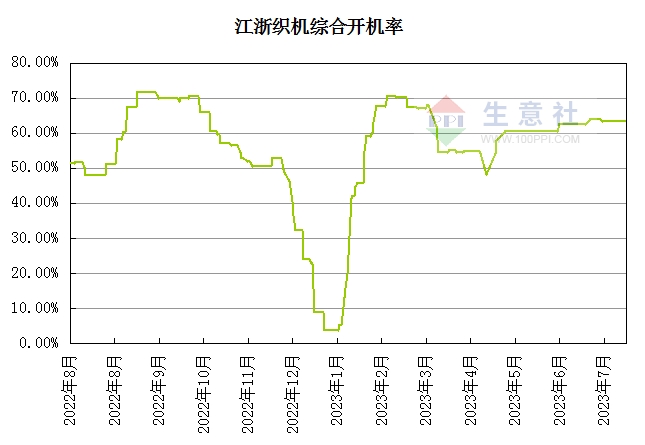 進入8月初,高溫限電、亞運會等因素尚未對織造企業(yè)產生抑制,局部工廠備貨意愿升溫。且基于對旺季需求的預期,下游仍在做庫存準備,表現比較明顯的就是秋冬服裝類面料的準備。江浙織機開工率維持在60%以上,但繼續(xù)上行乏力,新訂單沒有什么太大起色,仍處在偏低水平,另外外貿的疲軟也影響較大。