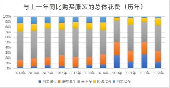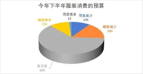對(duì)于后續(xù)在服裝上的消費(fèi)預(yù)算,有26.01%的受訪者表示會(huì)減少,有62.46%的受訪者表示沒(méi)有變化,有11.53%的受訪者表示會(huì)增加。這一數(shù)據(jù)與去年的調(diào)查數(shù)據(jù)相比也是有了明顯的改觀,說(shuō)明消費(fèi)信心在逐步恢復(fù)中。
