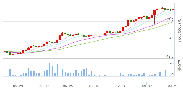 今日(2023年08月21日,周一)中國繭絲綢交易市場生絲指數微漲0.01%收于4892.69點。B絲(商檢4A級生絲):230825合約報平收于48.87萬元;230925合約上漲0.03萬元報收于49.11萬元;240325合約報平收于49.32萬元。