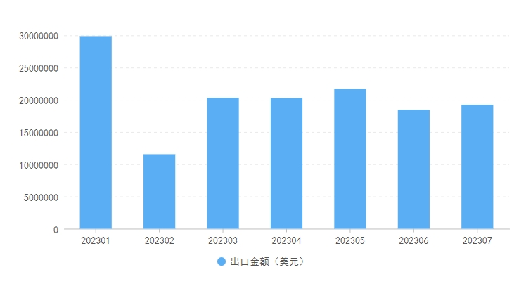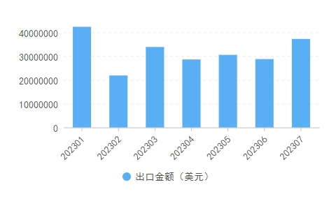 這是海關(guān)編碼為5007的絲或絹絲機(jī)織物商品出口金額統(tǒng)計。