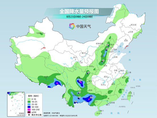 總體來看,8月下旬,我國的降雨主要集中在西南地區(qū)、西北地區(qū)東部、黃淮西部、江漢、江南、華南西部等地,上述地區(qū)降雨日數(shù)普遍可達6至8天。尤其需要注意的是,25日至28日,黃河和長江之間將迎強降雨過程,陜西南部、四川北部、湖北西部一帶的降雨可能具有一定極端性,公眾需關(guān)注臨近預報,及時做好相關(guān)防范工作。