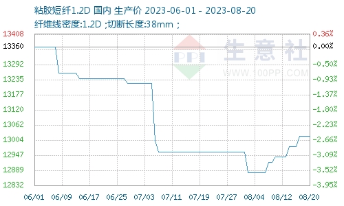 據(jù)生意社商品行情分析系統(tǒng)顯示,上周(2023年8月14—20日),粘膠短纖市場(chǎng)呈現(xiàn)小幅走強(qiáng)態(tài)勢(shì),價(jià)格小幅提升,截止8月20日,1.2D*38mm粘膠短纖國(guó)內(nèi)地區(qū)出廠報(bào)價(jià)為13020元/噸,較前期上漲80元/噸,周漲幅0.62%。