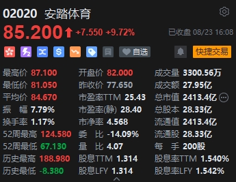 體育用品板塊漲幅活躍,安踏體育(85.2, 7.55, 9.72%)上漲近10%。消息面上,8月22日,安踏體育發(fā)布2023年半年報。報告顯示,安踏體育實現(xiàn)營收296.45億元,同比增長14.2%,歸母凈利潤 47.48億元,同比增長32.8%。其中FILA(斐樂)重回雙位數(shù)增長,營收達(dá)到122.29億元,同比增長13.5%。