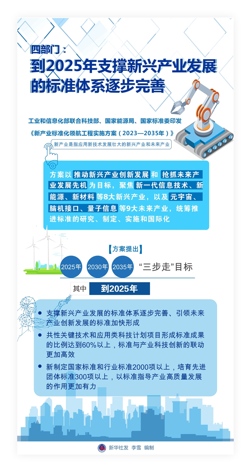 工業(yè)和信息化部有關(guān)負(fù)責(zé)人表示,新產(chǎn)業(yè)是指應(yīng)用新技術(shù)發(fā)展壯大的新興產(chǎn)業(yè)和未來產(chǎn)業(yè)。標(biāo)準(zhǔn)化在推進(jìn)新產(chǎn)業(yè)發(fā)展中發(fā)揮著基礎(chǔ)性、引領(lǐng)性作用。方案以推動(dòng)新興產(chǎn)業(yè)創(chuàng)新發(fā)展和搶抓未來產(chǎn)業(yè)發(fā)展先機(jī)為目標(biāo),聚焦新一代信息技術(shù)、新能源、新材料等8大新興產(chǎn)業(yè),以及元宇宙、腦機(jī)接口、量子信息等9大未來產(chǎn)業(yè),統(tǒng)籌推進(jìn)標(biāo)準(zhǔn)的研究、制定、實(shí)施和國(guó)際化。