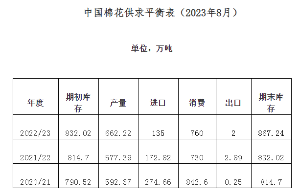 7月,全國大部棉花處于開花期,整體長勢好于預(yù)期。國內(nèi)棉價維持偏強走勢,24日中國棉花價格指數(shù)上漲至18070元/噸,創(chuàng)本年度以來新高。之后,滑準稅配額和儲備棉銷售政策先后公布,疊加需求端偏弱,月末棉價出現(xiàn)回調(diào)。同期,國際棉價也明顯上漲,但是因經(jīng)濟衰退預(yù)期較強,漲幅不及國內(nèi)。紡織品市場仍處傳統(tǒng)淡季,棉花價格上漲向后道傳導(dǎo)不暢,紗線銷售依然冷清,成品庫存持續(xù)增加。中國棉花協(xié)會統(tǒng)計,2022年度全國棉花產(chǎn)量為662.2萬噸,同比增長14.7%;預(yù)測棉花消費量為760萬噸;進口量根據(jù)海關(guān)總署數(shù)據(jù)由160萬噸下調(diào)至135萬噸,同比下降22%;出口量下調(diào)至2萬噸;期末庫存相應(yīng)下調(diào)為867.2萬噸,同比增長4.2%。